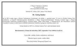 Dr. Görög Sándor – gyászjelentés Posted on 2025.08.12.Updated on 2025.08.12.by Oláh CsabaCategories:MGYT hír